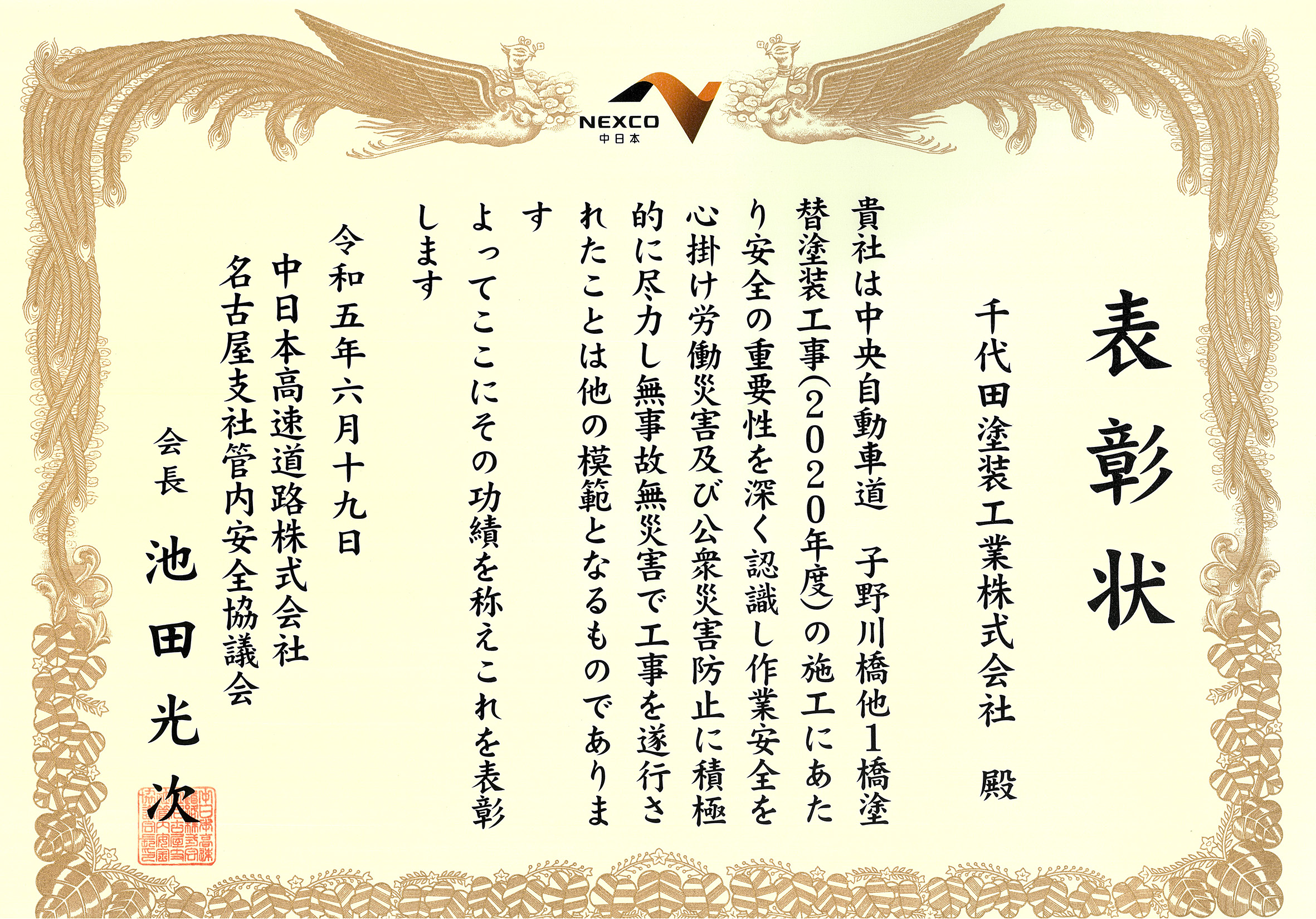 無事故で工事完工して頂きまして本当にお疲れさまでした。